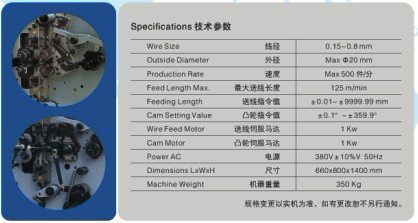 可生產發腳彈簧;配備有拉簧裝置,可生產邊鉤拉簧。